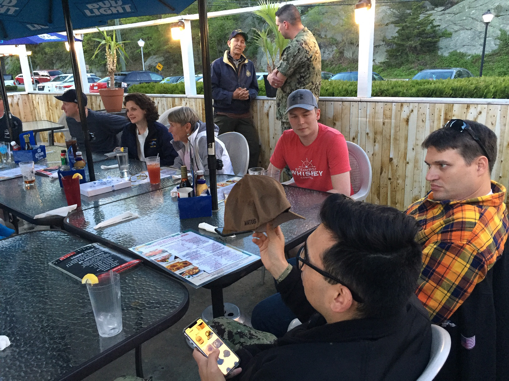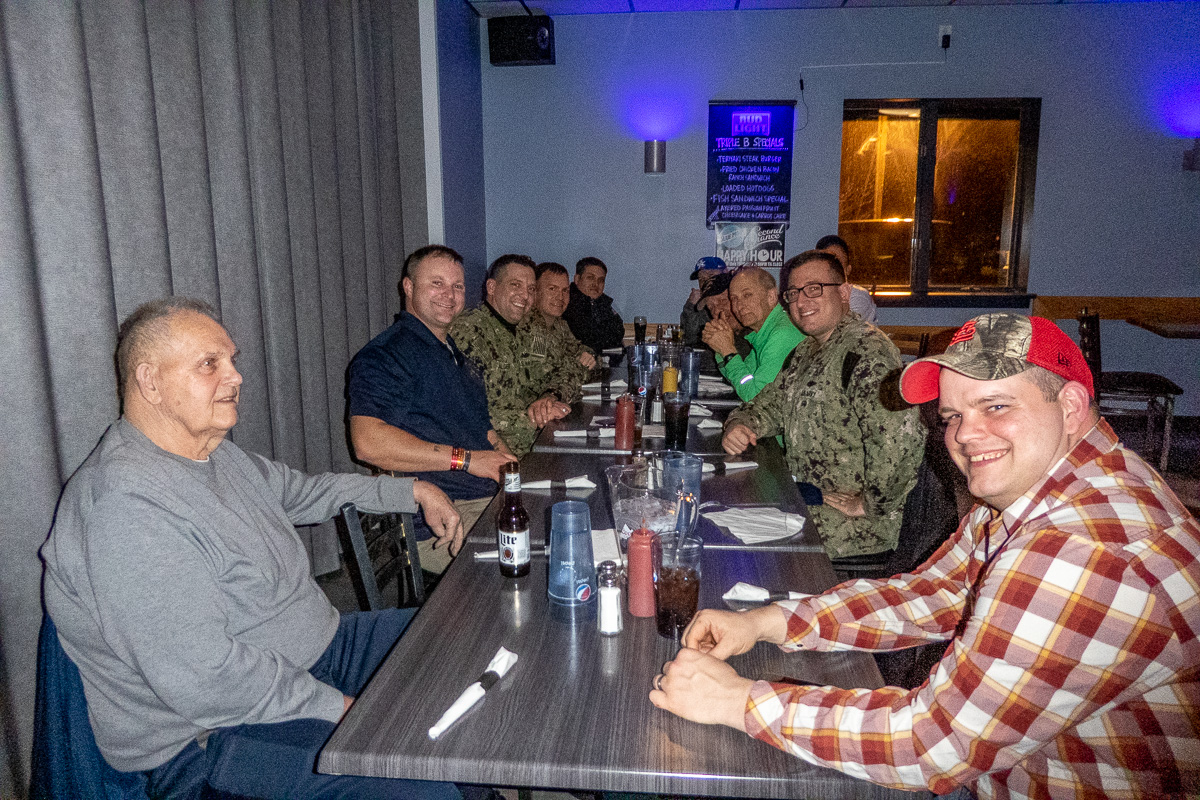 On the last night the Association members went to dinner with the CO, XO, COB and their spouses and had a great time further discussing support and exchanging many “sea stories” of one sort or another.