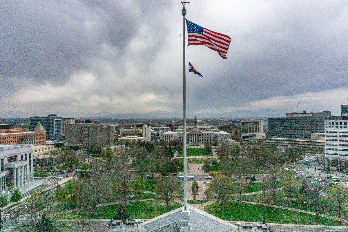 Monday was a busy day for our sailors. They made presentations at Castle View High School in Castle Rock and Casey Middle School in Boulder talking to about 150 students. In the afternoon they received a special tour of the Capitol and observed a flag raising from the balcony of the Capitol dome. They met with Governor Polis who presented them with the Colorado state flag. From there it was off to the University Memorial Center (UMC) at CU Boulder. The UMC is the official repository of USS Colorado artifacts and has the ships’ bells that served first three USS Colorado’s and a replica of the bell currently in service on the submarine, a gift from the USS Colorado (BB45) Association.