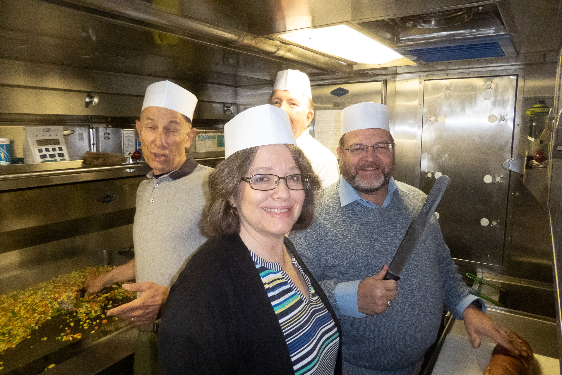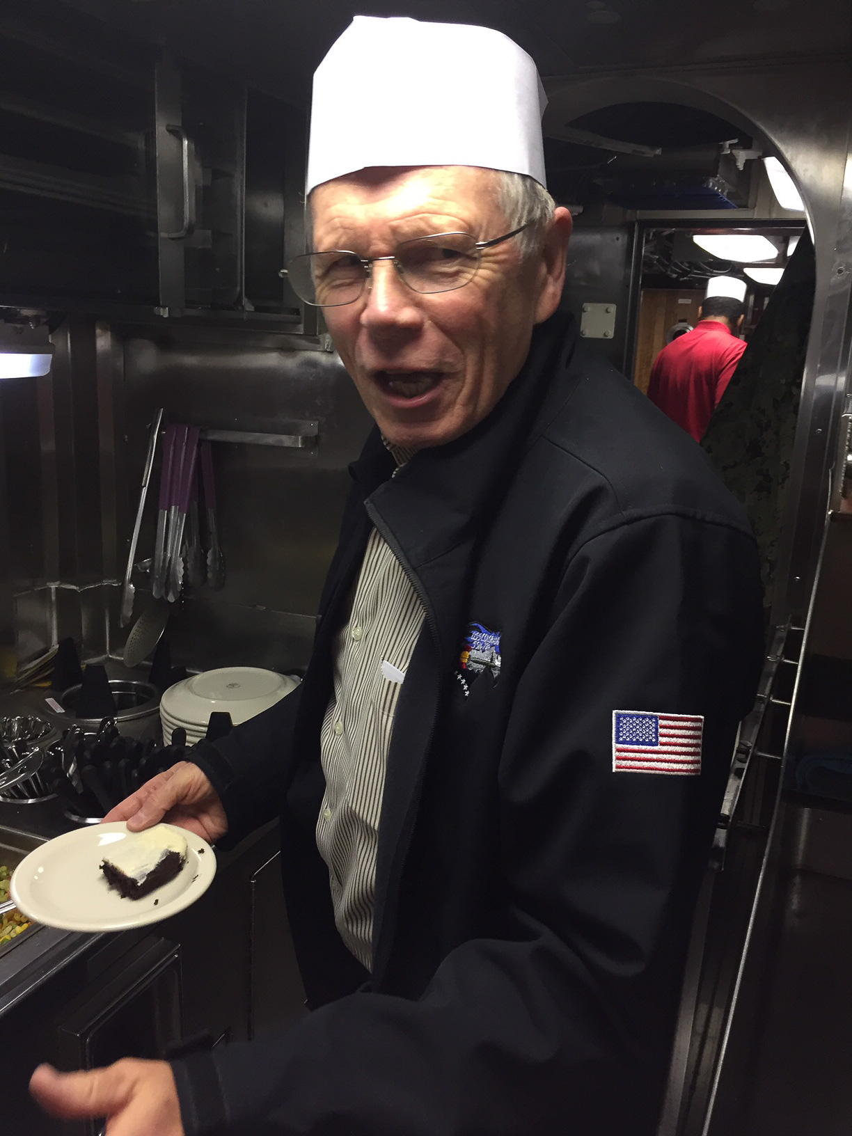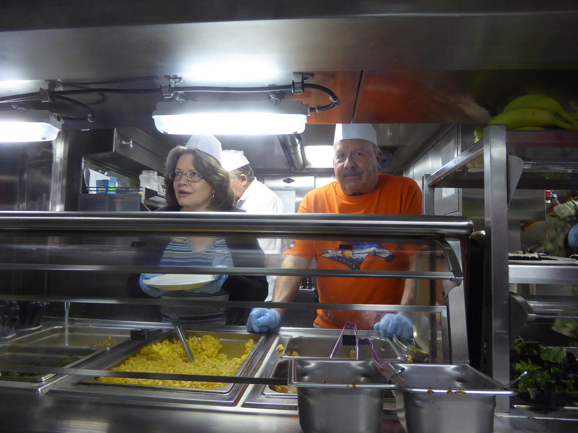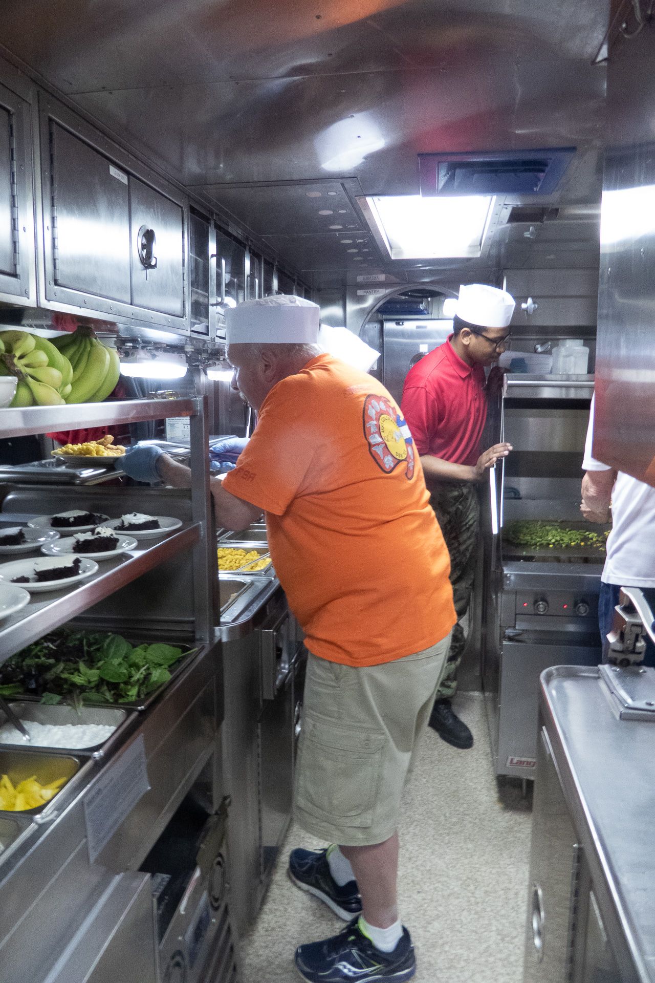 On May 16 and 17 eight members of the USS Colorado Submarine Association visited the crew of USS Colorado in their home port. Don and Sheri Price, JJ and Florence Mackin, Rick and Donna Riesssen, Mark Nelson and Bill Rinz traveled to Groton, CT and on Thursday, in order to show their support for the crew, helped prepare and serve both noon and evening meals on board under the watchful eye of Culinary Specialist Shamar Close. The crew members seemed appreciative of their efforts.